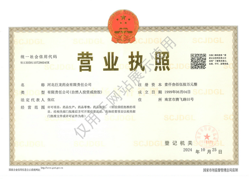 版權(quán)所有:河北巨龍藥業(yè)有限責(zé)任公司 冀ICP備19023826號(hào)-1 冀公網(wǎng)安備13058102000452號(hào) 證書編號(hào) :(冀)-非經(jīng)營(yíng)性-XXXX-XXXX